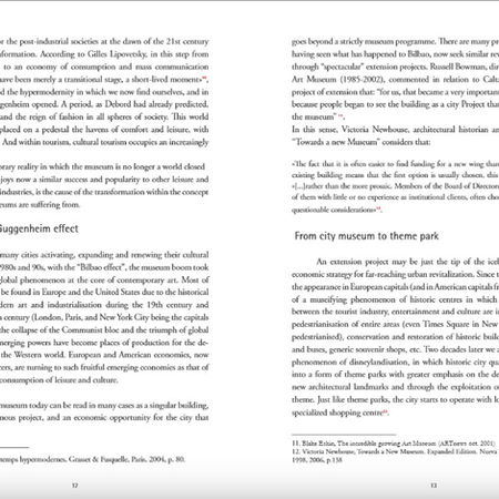 The essay is the result of a year of research and bimonthly meetings with Muntadas, to talk about different Museum expansions throughout the world. His retrospective was a sum of old works plus a new intervention he did BETWEEN the two buildings of the Museum – the old Hospital and the Nouvel expansion. In order to think about it and develop and idea, he used me to catalogue all the most important museum expansions in the world and discuss them with him.