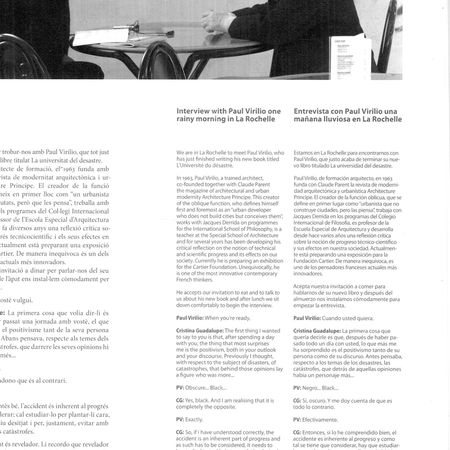 I was also collaborating at the time with Suite Magazine (I had interviewed Enric for it). So, when I asked him if he wouldn´t mind that I ask Virilio for an interview the morning before we left la Rochelle, he told me to go ahead! The picture I have with Virilio was taken by Enric himself.